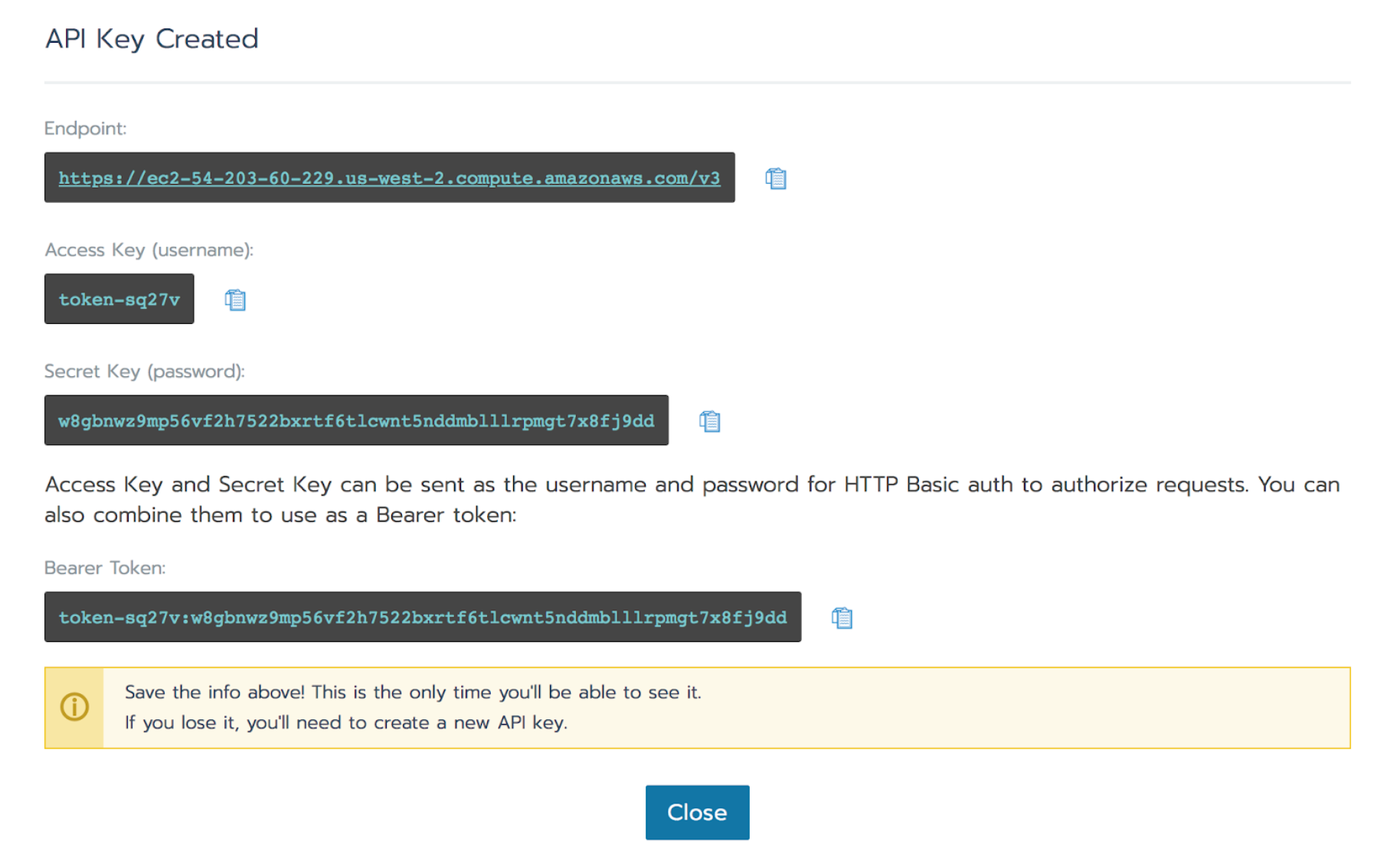 1. Perform the steps on the Rancher API Keys page.